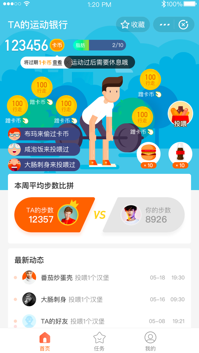 线上活动“8·8全民健身狂欢节”今年更名为“8·8运动狂欢节”,除了在运动商场内购买体育实物类和服务类的商品,更与“看”和“玩”两大行为相结合,增加了更多具有社交属性的玩法,比如在“运动银行”上线后一路高走的首页游戏“甩脂肪”,既可以用自己运动时产生的卡币购买虚拟食物把脂肪甩到好友身上,也可以“偷”好友的运动成果,从而把脂肪甩给好友,“快意”地把别人变胖。