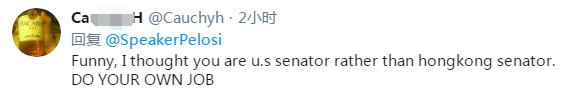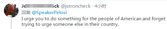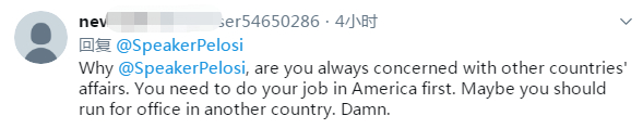 这种言论,甚至招致了许多美国网友的反感。有网友留言反对佩洛西干涉他国内政,“让中国政府自己处理”。