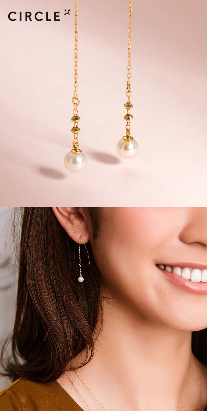 喜欢长耳坠的女生可以选择金线与珍珠串连的款式,既能修饰脸型又能戴出时尚感。除了日常场合,珍珠长耳坠在正式场合也能彰显魅力,搭配一身简约西装,极简造型中融合了独特的动感,温柔娴静。