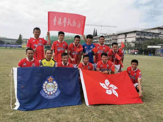 赛场边,有心的球迷们悄悄在铁丝网上贴上了“香港加油”的纸条;赛场上,刚刚为一两次犯规争得脸红脖子粗的对手,停哨之后给老虎队送来了精美的伴手礼;合影时分,每一位香港警察球员都成为众星捧月的对象……