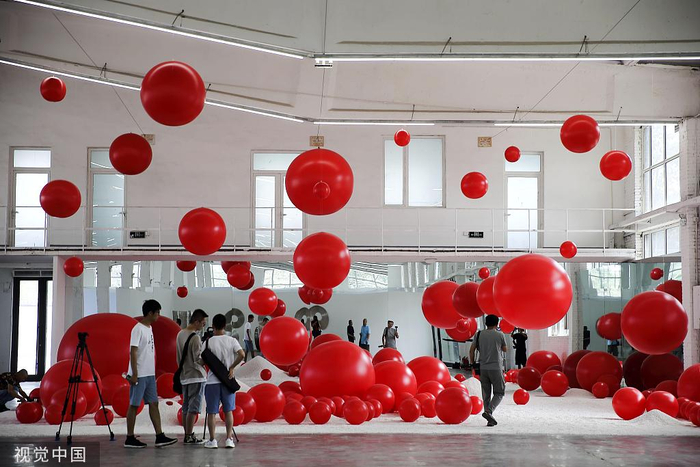 这是谢克的作品第一次在一个县城展出。7月4日,他从北京坐最早一班高铁赶到平遥。路上,他发现列车驶入山西境内后,有很长一段时间天色都是灰扑扑的,但平遥的天是蓝的。