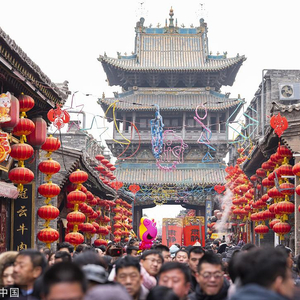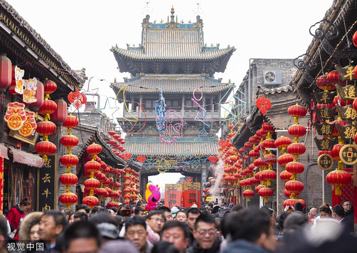 2019年2月8日,山西平遥古城内各地游客络绎不绝,热闹非凡。 图/视觉中国