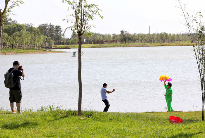 新京报讯 8月16日,位于朝阳区崔各庄乡东北部、总面积138万平方米的黑桥公园正式开园。据介绍,黑桥公园项目绿地面积达96万平方米,未来将新植4.76万株乔木、4.76万株灌木。崔各庄乡相关负责人表示,黑桥公园设置了滨水区、生态保育区、林地体验区、耕读文化体验区、健身运动区、儿童活动区六个不同功能区。