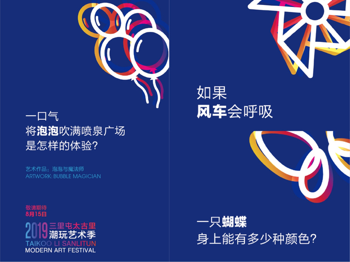“2019三里屯太古里潮玩艺术季”已正式启动,在未来一个月的时间里,三里屯太古里携手艺术北京,将“潮玩”的时尚态度融入流动的光影艺术中。这次潮玩艺术季有很多适合“拍照打卡”的场景。比如《泡泡与魔法师》艺术装置、《幻蝶》写实雕塑,还有随气息流动而变化光晕的《呼吸》,折射无尽光影变幻的《天眼》等。此外,在三里屯太古里北区北院还有一只巨型Bearbrick积木熊联名玩偶,这款又萌又酷的中国限定版积木熊高达5米,是三里屯太古里有史以来最大的积木熊。