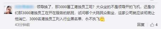 国泰两高管辞职 网友:那3000罢工"港独"员工呢?