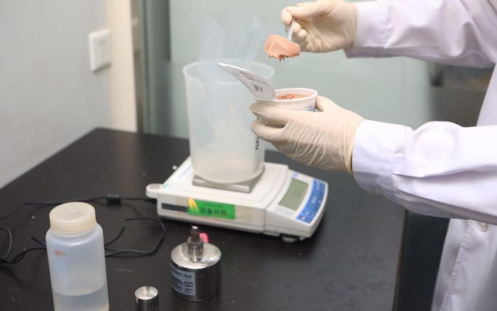 工作人员对雪糕进行取样。