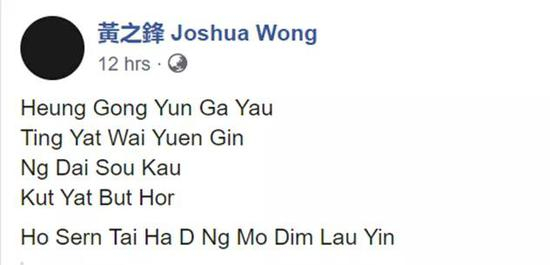 ▲图为苹果日报和黄之锋改用粤语拼音发帖,但有当地网民抱怨拼音没学好看不懂