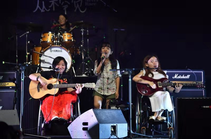 一次乐队被邀请去残联演出,成员们上台去一顿“躁”,台下的领导眼里露出不少吃惊。