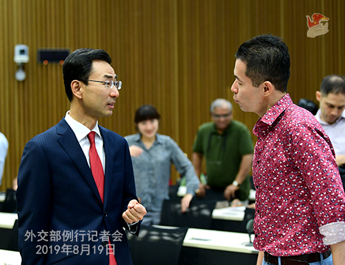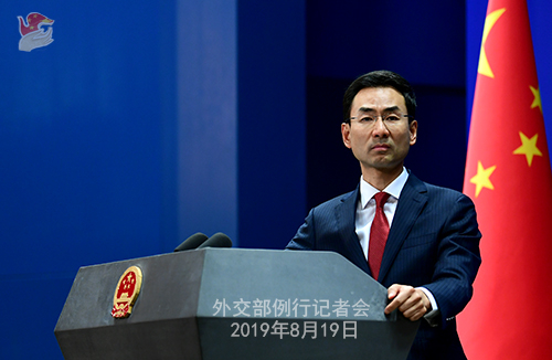 原标题:2019年8月19日外交部发言人耿爽主持例行记者会