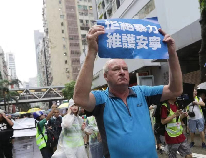 在香港生活的外籍人士 彼得:我在香港生活了半辈子,有四十多年了,我还从没见过香港出现这种情况。所以我想对那些使用暴力的人说,为什么你们要害怕中国?成千上万的西方人,成千上万的香港人,生活在中国,过着幸福的生活。我们应该爱香港,我们应该爱中国,我们应该永远拒绝暴力 。