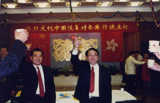 活动结束后,马振岗赶回使馆参加欢庆香港回归招待会。与英国外交部的那场招待会不同,使馆的气氛庄严而喜庆。