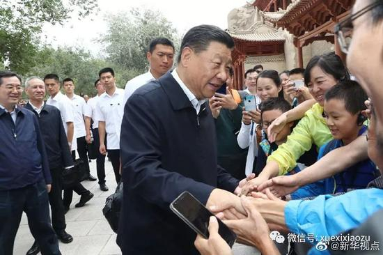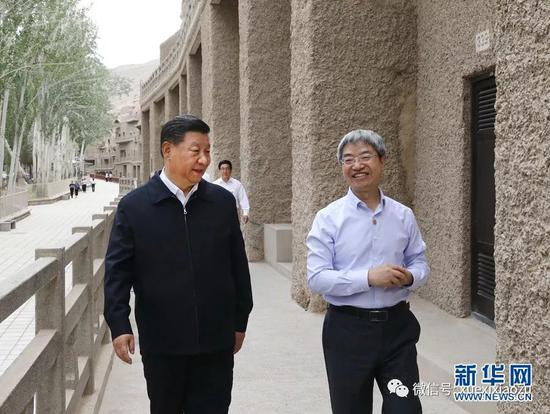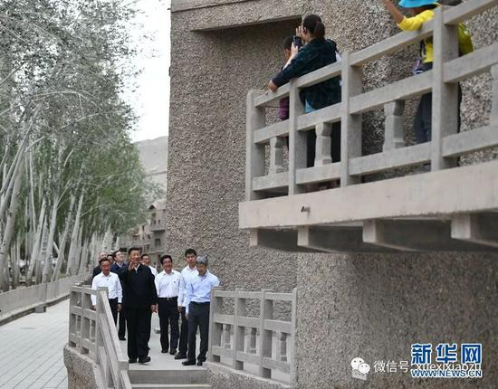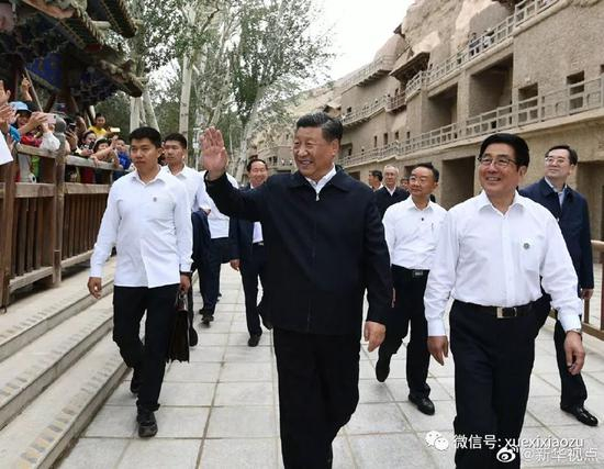 19日下午,在甘肃考察的习近平总书记来到敦煌莫高窟,步行察看景区整体风貌,沿途听取莫高窟基本情况介绍,走进洞窟实地察看历史悠久的彩塑、壁画。看到总书记来了,正在这里参观游览的群众激动地欢呼起来,纷纷向总书记问好。