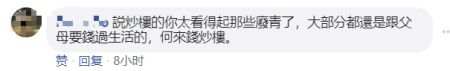 有的网友比较有“经济头脑”,一眼就看出了这里头的商机,但是马上就被“明白人”怼了回去:“说炒楼的太看得起那些‘废青’了,大部分还是跟父母要钱过生活的,何来钱炒楼”。