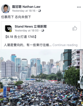 早在几天前,罗冠聪就在脸书上发帖称,自己已抵达纽约,9月准备去耶鲁大学进修硕士。帖文最后,罗冠聪还不忘鼓动:“8月18日‘民阵游行’,记得要参加”。挑唆他人罢学罢课上街示威,而自己却脚底抹油溜到大洋彼岸的美国,准备开启名校的读书生涯。罗冠聪的留言板一时间被“轰炸”,有网友说是示威者的血肉为他的的人生添光彩。