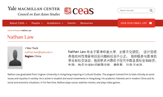 查阅美国耶鲁大学官网,罗冠聪的个人信息已经出现在耶鲁大学东亚研究项目的学生名单中,关注的领域为“中国”,9月19日正式开学。