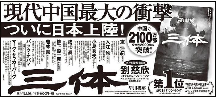 不久前刘慈欣的小说《三体》在日本出版,就有书店做出夸张风格的海报。