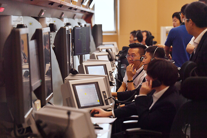 北京终端管制中心管制大厅面积2000多平方米,共有九排管制员席位,共计56个管制席位,管制员在这里指挥中低空航班运行。终端管制中心的主要职责是把出港的飞机引导到主干航路,把进港的飞机排好队对准跑道。对旅客而言,大概是起飞后十几分钟以及落地前十几分钟的过程。