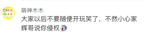此外,也有网友不忘“友情提醒”:以后不要随便开玩笑说“渣渣辉”,不然会侵权。↓