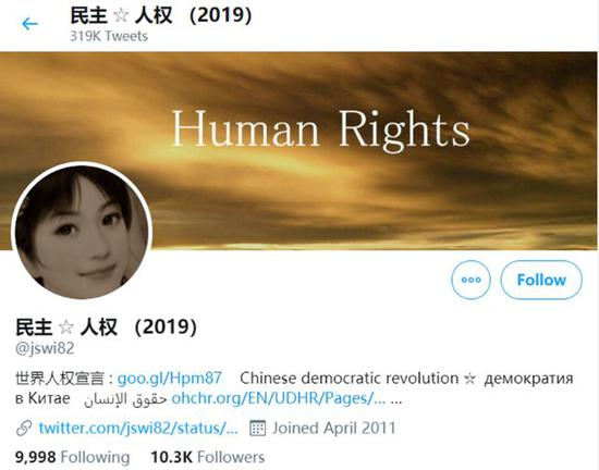 这些机器人账号的名称、头像和背景都存在相似性,并经常以#人权#为标签,发布反华信息。