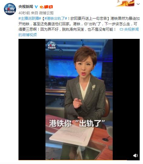 港铁“出轨”了 央视主播欧阳夏丹送上一句忠告