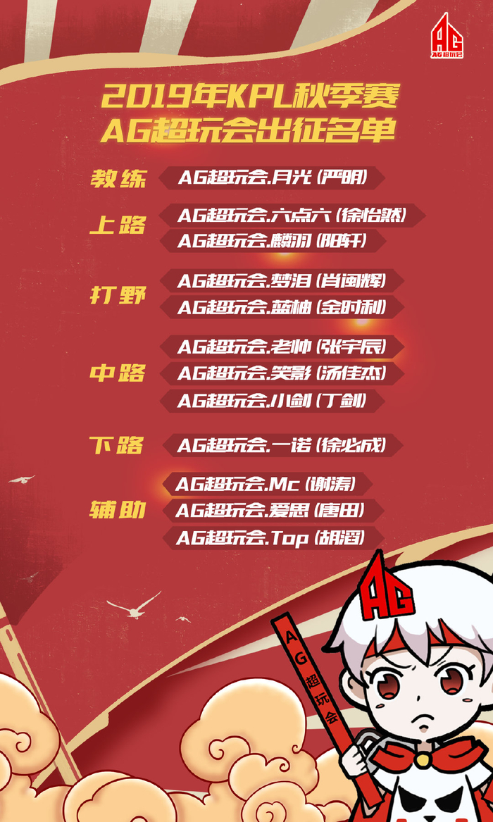 AG超玩会公布秋季赛名单。