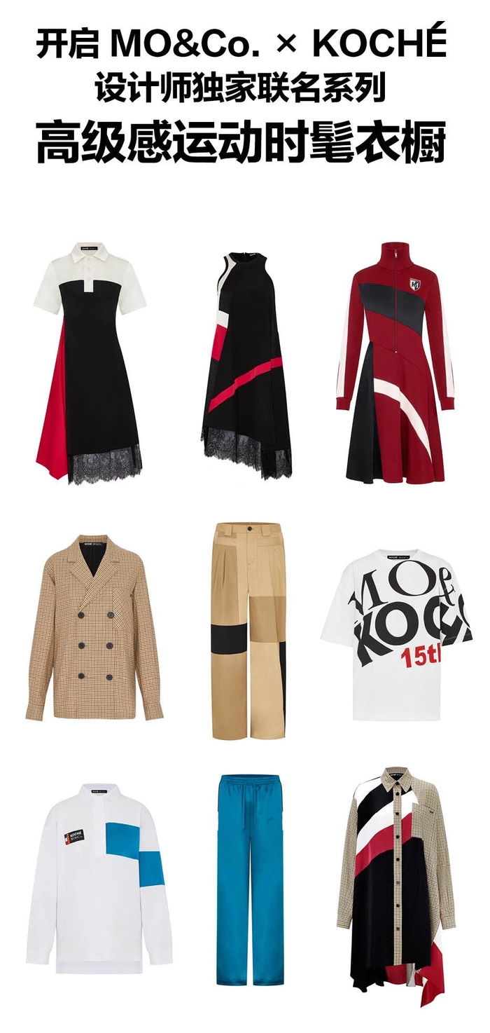 MO&Co.特别联手巴黎设计师品牌KOCHÉ,推出首个联名合作系列,重新定义人们对sporty chic(轻运动风)的理解。设计师Christelle Koche一直以来受到业界的高度认可,曾入围LVMH设计师大奖赛,今年更摘得2019年ANDAM法国国家时尚艺术发展协会时尚大奖。MO&Co.×KOCHÉ联名系列将为你打造一个时髦又充满高级感的运动衣橱。