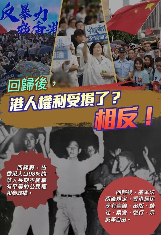 原标题:回归后港人权利受损了?“一国两制”失败了?看事实!