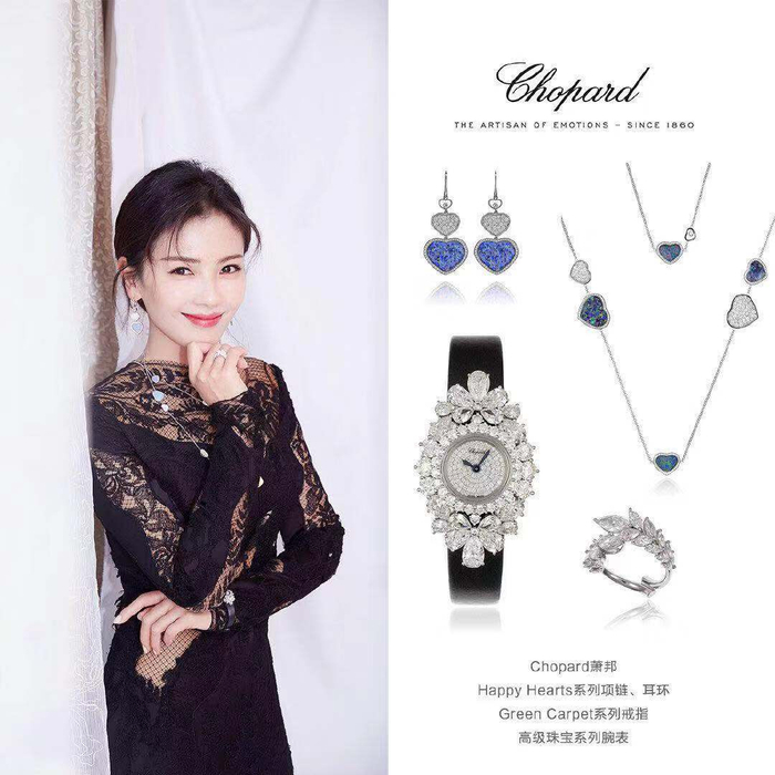 刘涛佩戴Chopard萧邦靛蓝色珠宝。图片来源/Chopard萧邦官方微博截图