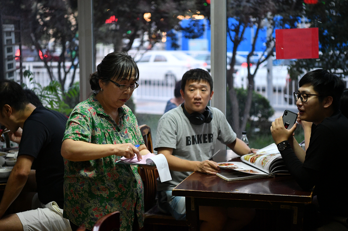 8月24日傍晚,60岁的燕龙餐厅负责人宗春娥忙着写单。 新京报记者 吴江 摄