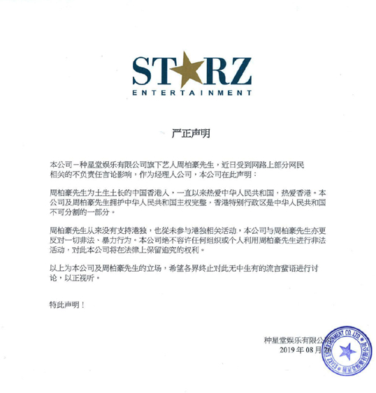 这是周柏豪26日下午4时53分在其官方微博发布的一段声明。今天下午,#周柏豪声明#,还一度登上微博热搜第一。↓