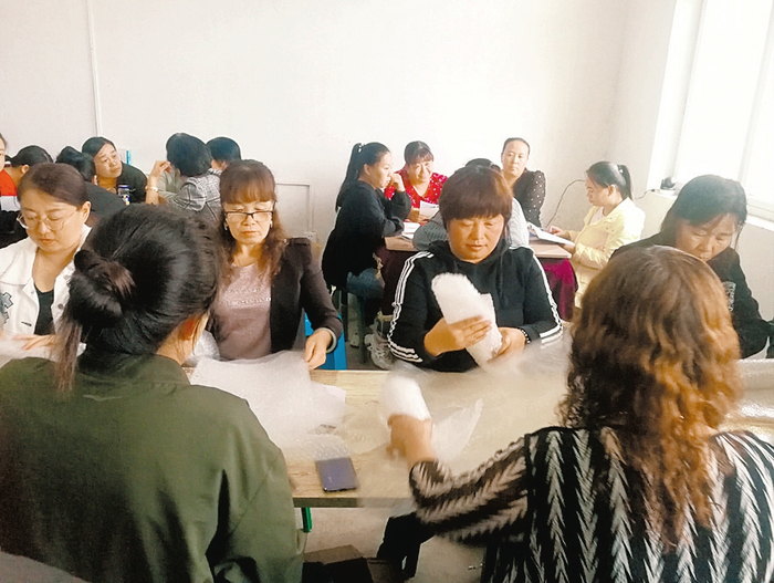 8月24日,在寿阳县南庄村物流服务师培训班上,学员正在进行易碎品快递包装练习。(高建华摄)