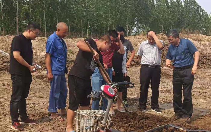 曹中将(手拿工具者)向参观者展示蚯蚓养殖情况。受访者供图