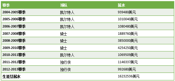 效力球队:凯尔特人、超音速、骑士、独行侠