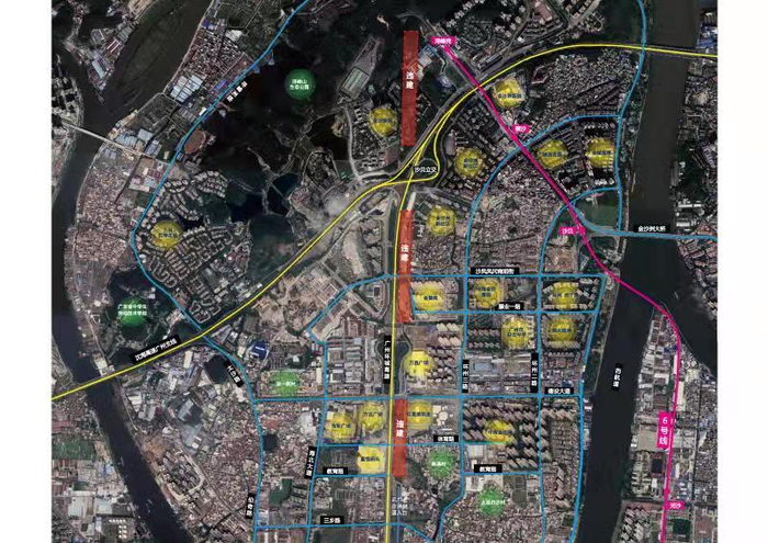 武广·金沙洲土地保护利用开发项目部(金沙洲项目部)出示的卫星地图显示,金沙洲隧道出口往北约5公里范围内的土地,由广州环城高速分隔成3个地块,1号地块大致位于佛山市南海区大沥镇,2、3号地块大致位于广州市白云区金沙洲街道。