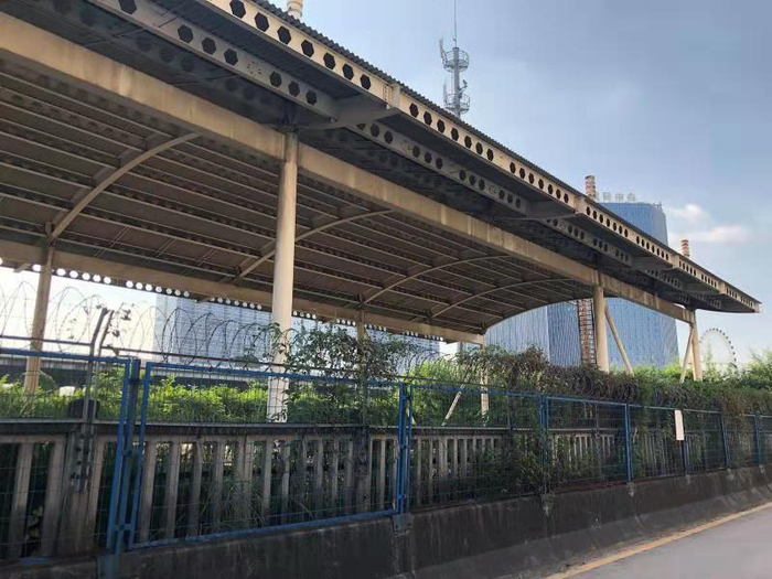 1号地整体封闭,颇显“神秘”。2019年8月,新京报记者多次到隧道出口北侧约1公里范围内的1号地块,地块外围已被高大树木围成一个独立区域,北端有一出口,但被铁门阻隔无法进入。地块西侧另一处关闭的铁门写着“练车场”,门口停着的教练车喷注“力和驾校”字样。地块四周均有绿色铁丝网围挡,铁丝网上有标语提示“高压危险,请勿靠近”,标语落款为“广州铁路公安处宣”。