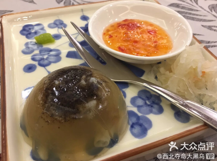 八闽食府的土笋冻外表少了“土味”,精致得像一道甜品。评价两极分化,有人说清爽开胃,有人说比不上在福建街头的,价钱也贵了很多倍。