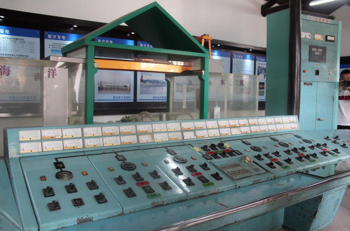 这是江厦潮汐电站1980年投运的中央控制台,计算机监控改造后淘汰下来成为展品。