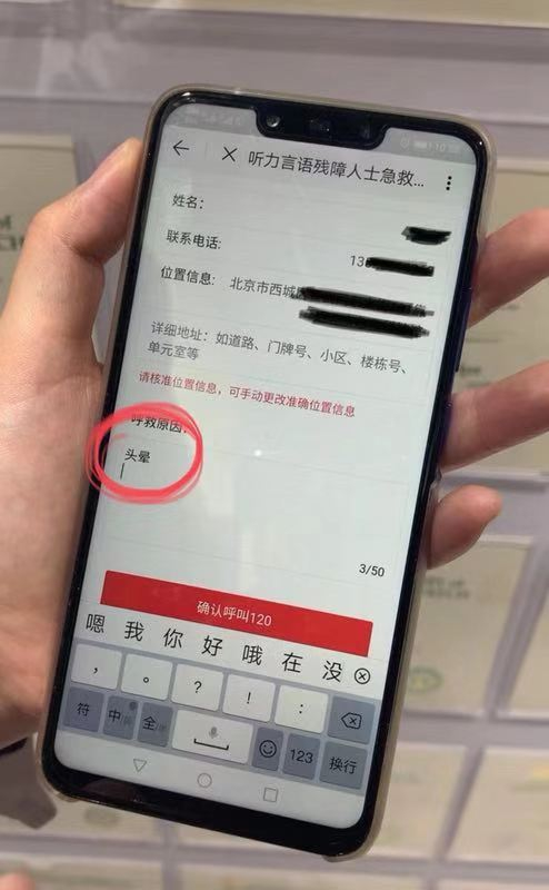 有听力语言障碍人士现场做了演示。新京报记者在北京通APP上看到,填写呼救原因后,一键“确认呼叫120”,平台随后跳出提示:“会有急救人员通过短信和您联系”。