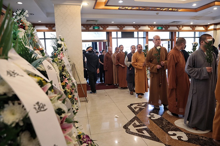 8月26日,人们手持菊花,赶来送别钱逊。 新京报记者 王嘉宁 摄