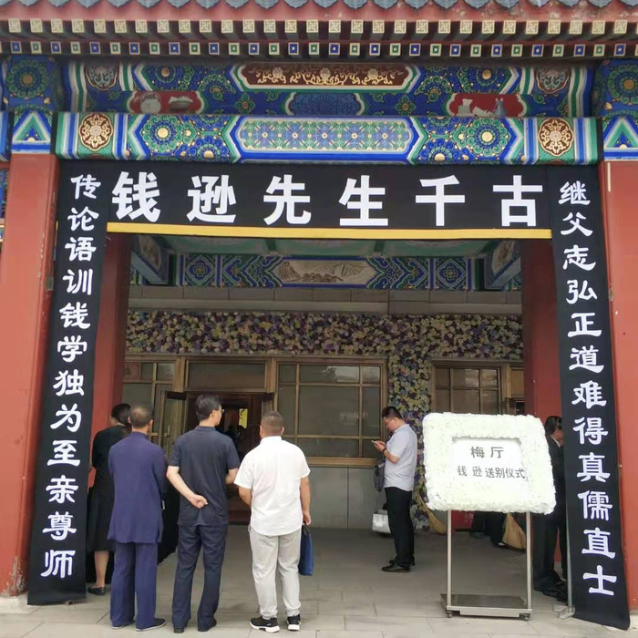之后,钱逊转入中国传统思想文化研究,与父亲渐渐靠近。退休后,他主要从事社会活动,致力于儒学研习与普及教育工作。钱逊曾指导的研究生、中国社科院历史理论研究所研究员刘巍为老师写下挽联,其中提到“继父志,弘正道”。