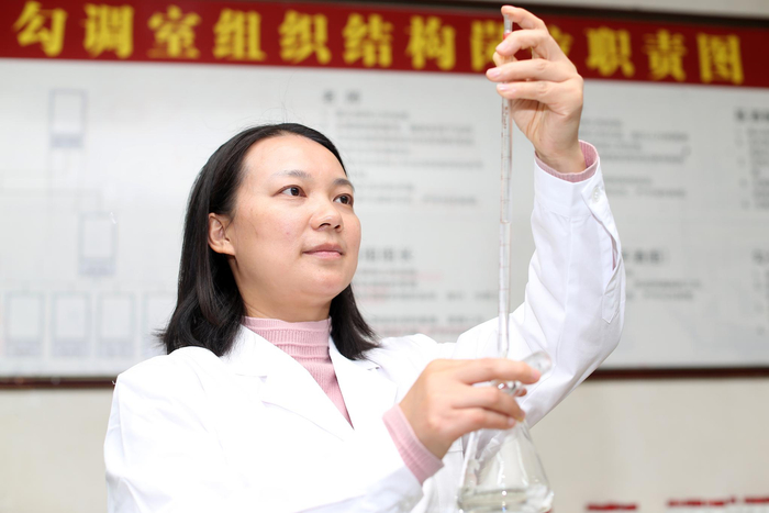 勾调中心的技术人员在进行勾兑。