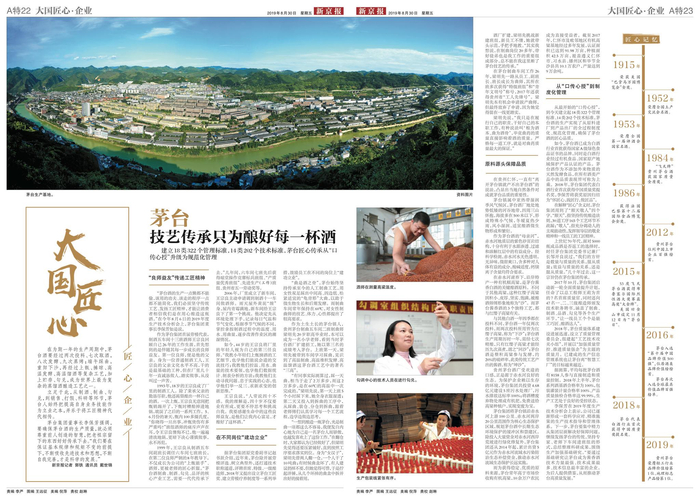 立足于此,从制酒、制曲、勾兑,到销售、打假、科研等环节,茅台人始终把提高自身业务技能作为立业之本,并乐于将工匠精神代代相传。