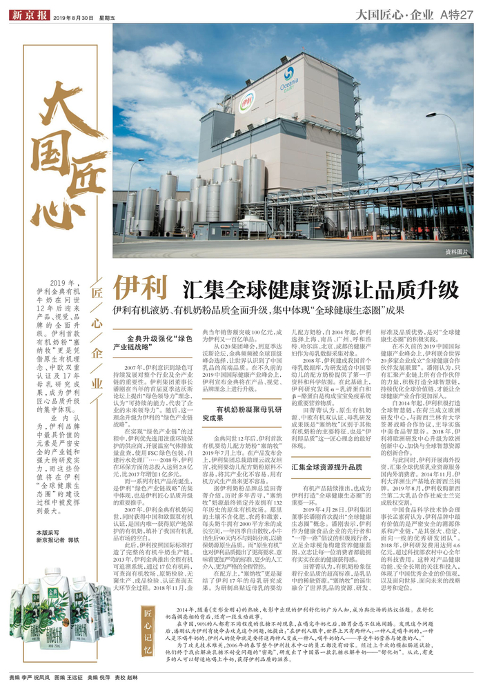 伊利有机液奶、有机奶粉品质全面升级,集中体现“全球健康生态圈”成果。