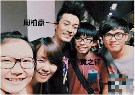 照片中紧挨着周柏豪,站在他左侧的人正是“乱港”分子黄之峰。