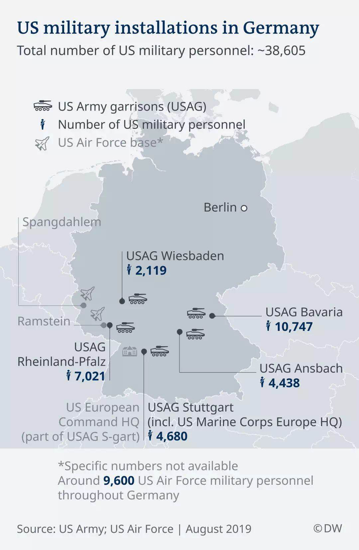 驻德美军分布图。图片来自DW