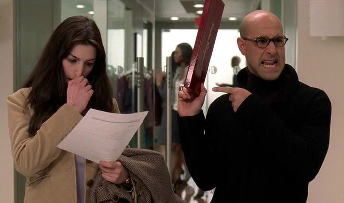 在2006年的影片《穿普拉达的女王》中,艾米丽·布朗特饰演秘书,斯坦利·图齐饰演光头创意编辑,二人是同事搭档,他们在片中没少折腾安妮·海瑟薇。