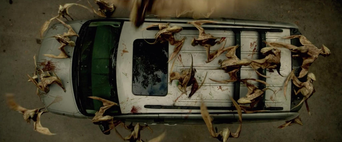 《寂静之地》:怪兽来自于外星,外形类似“异形”,出镜的怪兽主要就是一只,单兵能力突出,不会飞但爬行迅速,力大无穷,没有视觉。