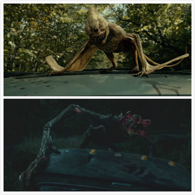 上下图分别为《死寂逃亡》和《寂静之地》中的怪兽。
