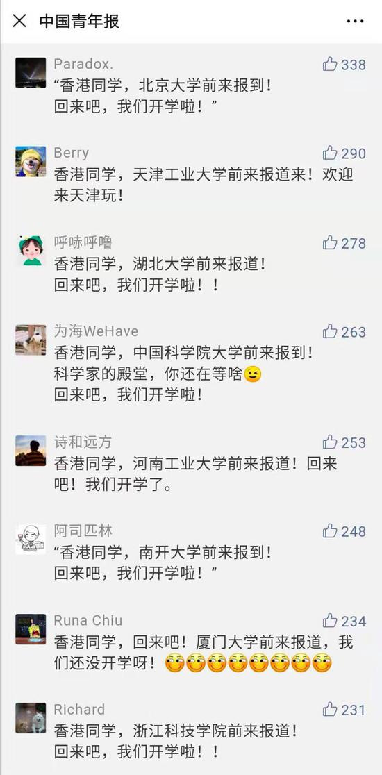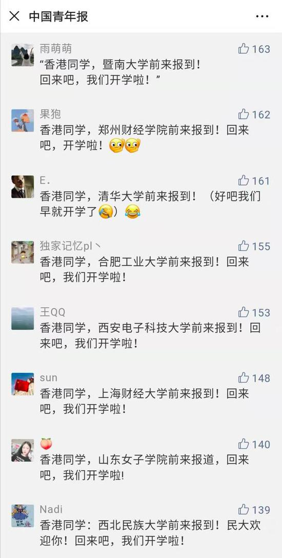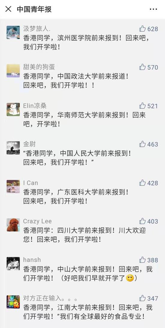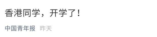 昨日,中国青年报官微发文《香港同学,开学了!》,表达对香港同学诚挚的期盼!