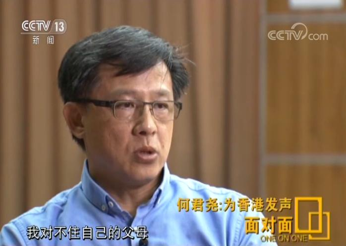 何君尧:最难承受的也要承受,已经过了,现在难道我要半途而废,向恶势力低头?作为香港民主选举产生出来的议员,面对庞大的外部势力搞乱香港,也可以选择完全,不出声,但是面对大是大非,你要支持香港繁荣稳定。从自己的良知来讲,我要有使命感,我要知道自己应该要干什么事情,所以要发声音出来。